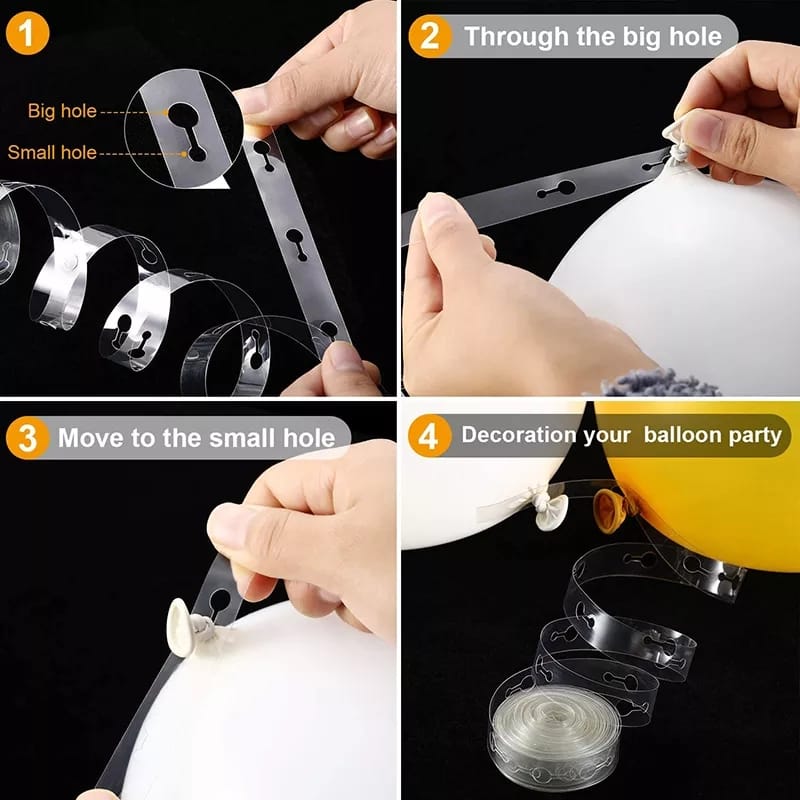This clear plastic balloon decorating strip tape allows you to create your very own beautiful balloon displays in your party venue. The tape comes with small holes to thread through the balloon knots for a secure fit. Mix and match with colourful latex balloons to create eye-catching balloon arches.
